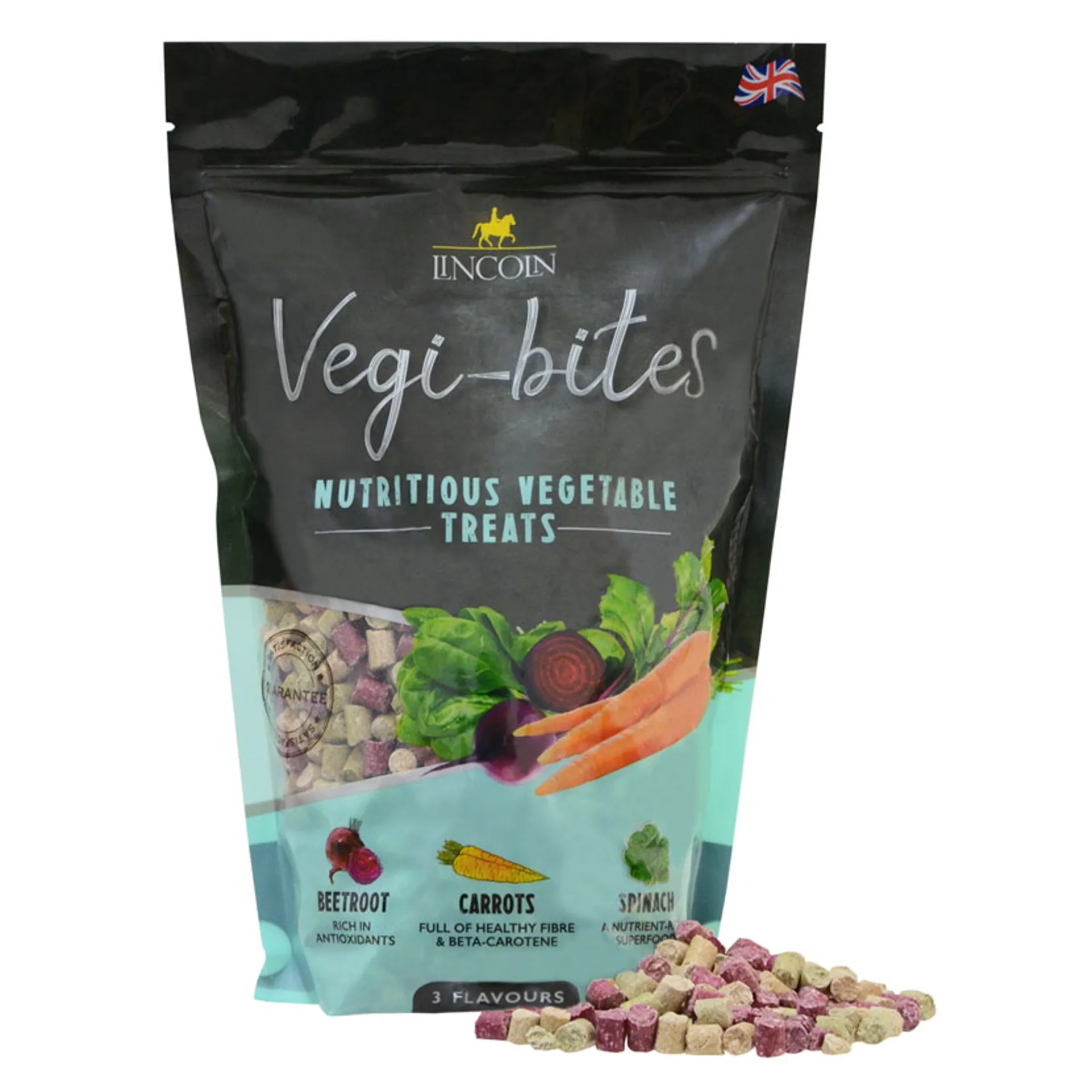 Crafted in 3 vegetable flavours, vegi bites are bursting with colour and natural goodness. Beetroot is rich in antioxidants, carrot is full of healthy fibre and beta carotene while spinach is a nutrient rich superfood. When fed in small amounts in a stable toy, the delicious flavours are a great incentive to stimulate play, keeping horses amused, particularly if on box rest.
